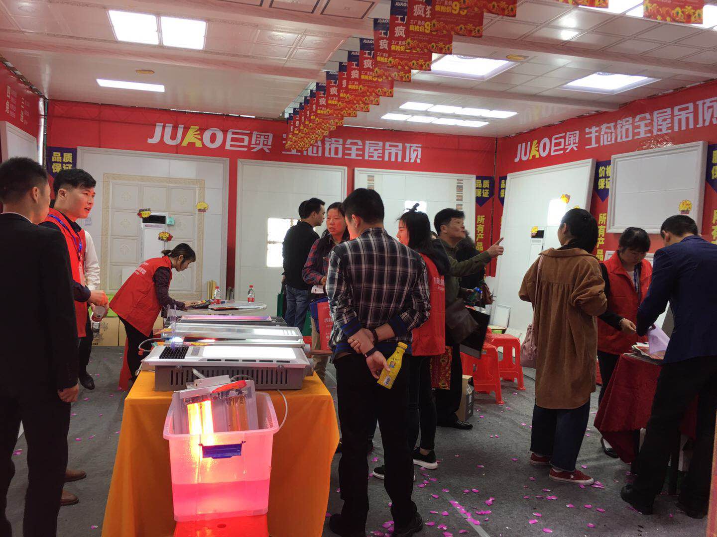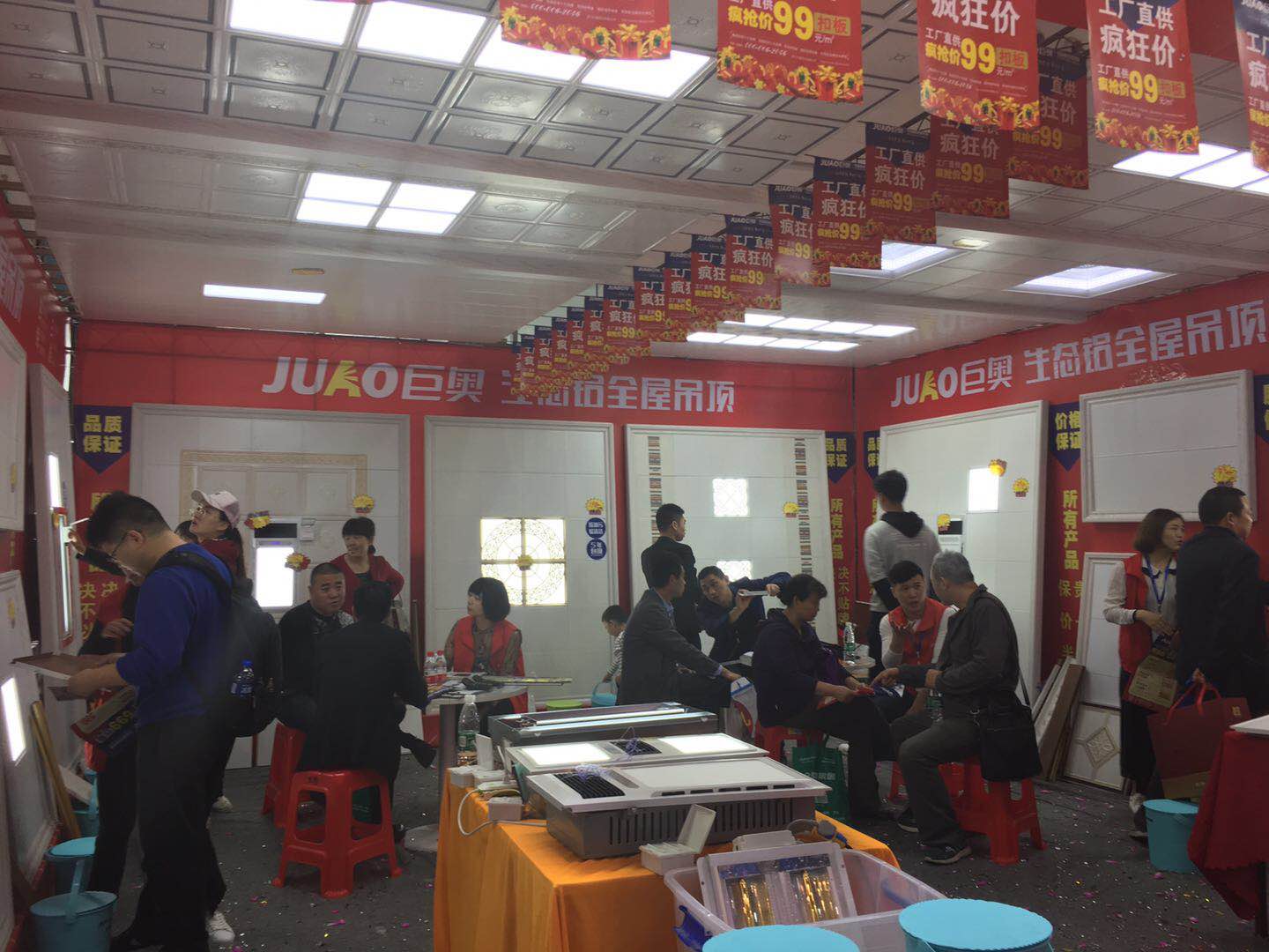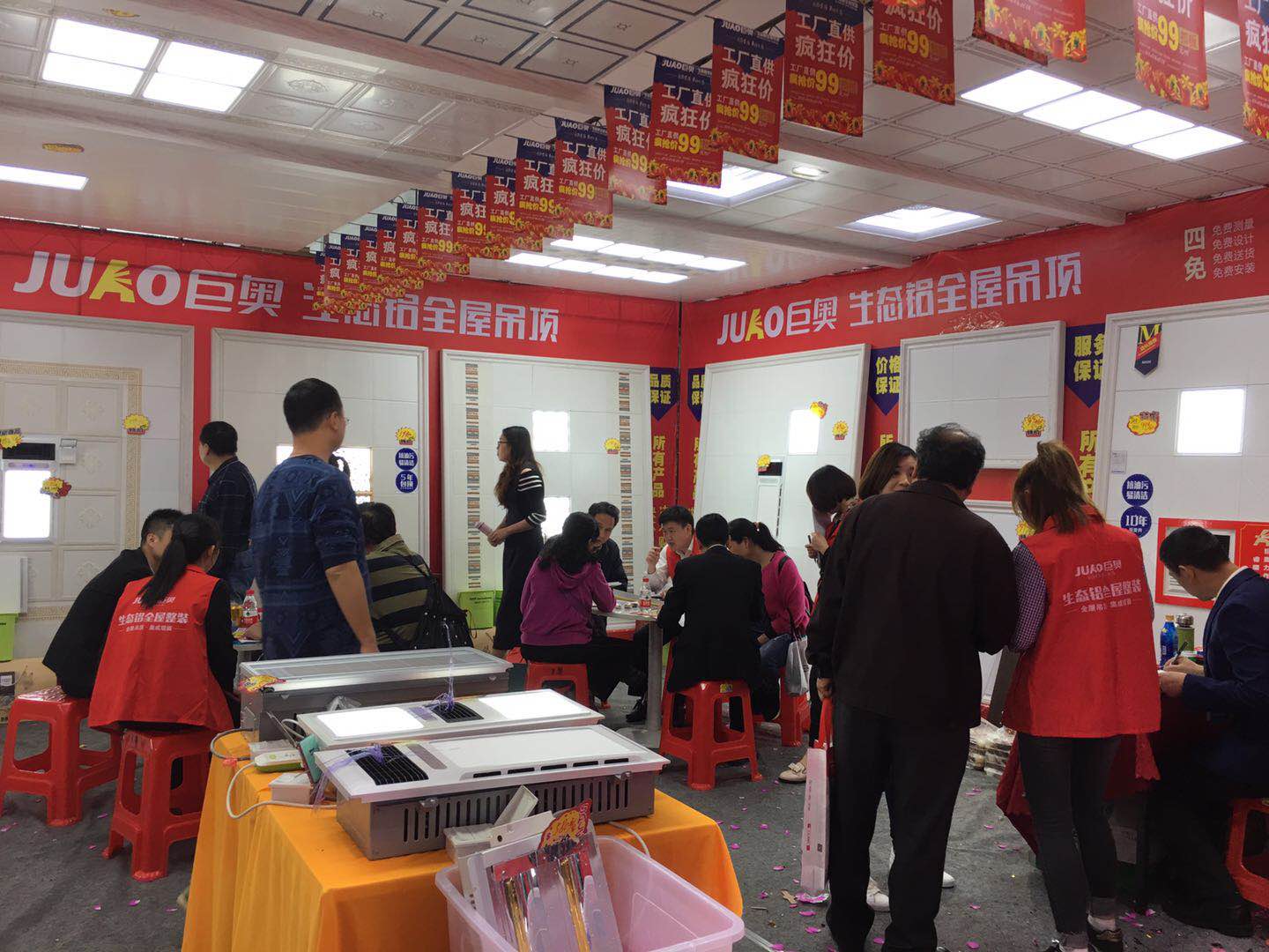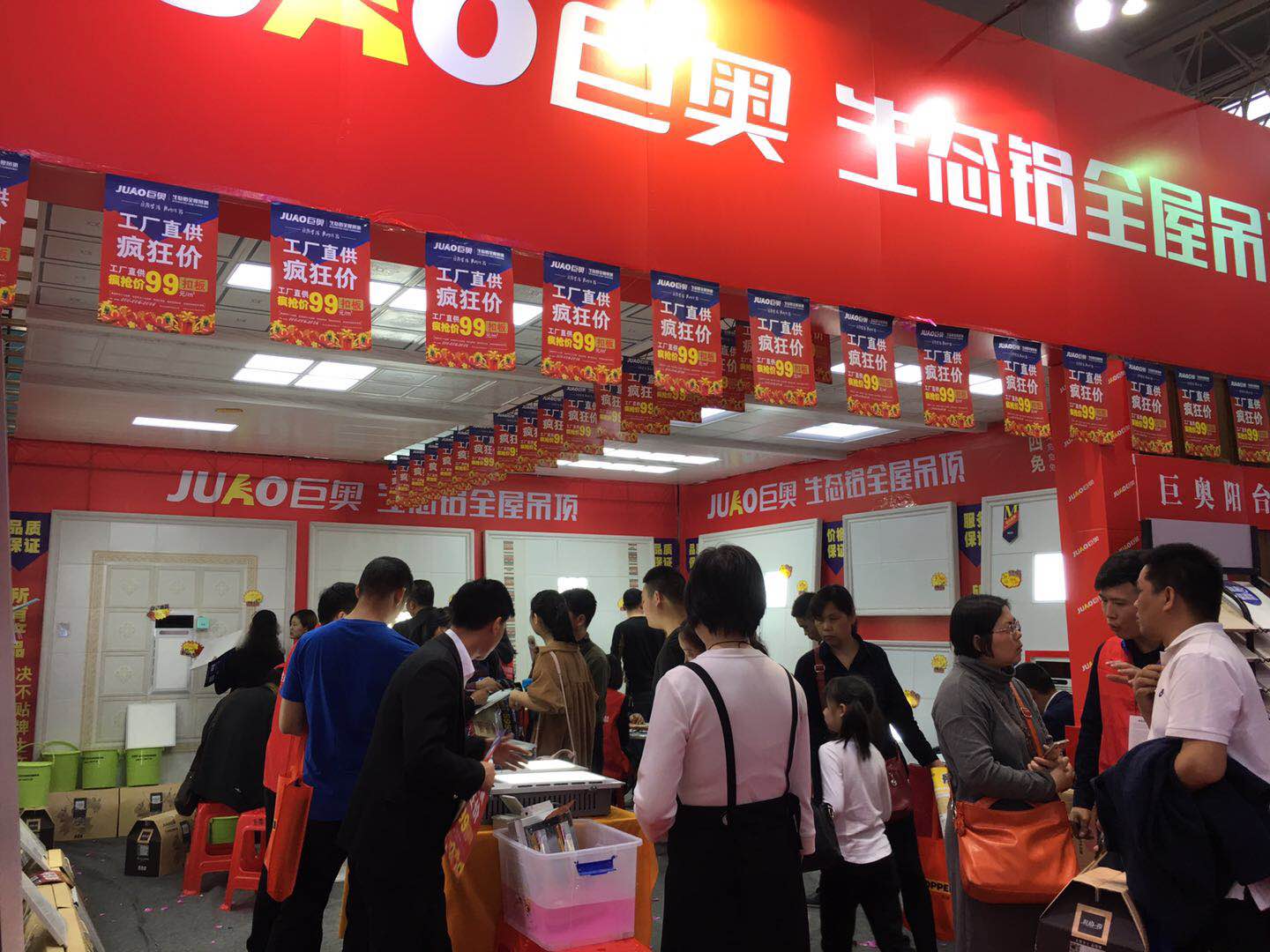 巨奧展位里,多款巨奧的明星產品閃亮登場,為大家展現了巨奧產品在外形和美觀程度上略勝一籌。詮釋了巨奧集成頂墻高端集成品牌,吸引了各位業主紛紛下單。